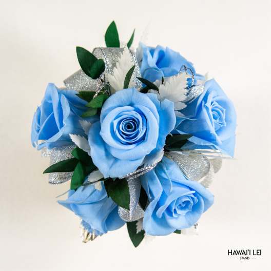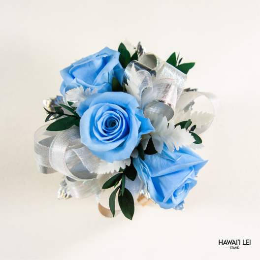 Price: $85.00 [Call To Order] Beretania's Wrist Corsage - Forever Rose (Premium - Blue) Product Tags: Free Pickup
