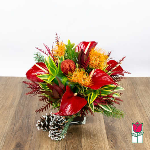 Price: $115.00 Beretania's Seasons Greetings Centerpiece (Seasonal Flowers Vary) Product Tags: Best seller Same-day Delivery